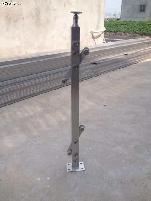 不銹鋼穿管立柱。柱身有穿管卡子,常見是4個穿孔,一般穿12mm、14mm、16mm、19mm的小管。