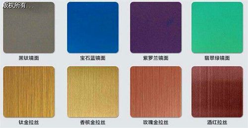 簡介 彩色不銹鋼裝飾板色彩絢麗,是一種非常好的裝飾材料,用它裝飾盡顯 雍容華貴的品質,彩色不銹鋼板同時具有抗腐蝕性強、機械性能較高、彩色面層經久不褪色、色澤隨光照角度不同會產生色調變幻等特點,彩色不銹鋼板而且彩色面層能耐200℃的溫度,耐鹽霧腐蝕性能比一般不銹鋼好,彩色不銹鋼板耐磨和耐刻劃性能相當于箔層涂金的性能。彩色不銹鋼板當彎曲90℃時,彩色層不會損壞,可用作廳堂墻板、天花板、電梯廂板、車箱板、建筑裝潢、招牌等裝飾之用,彩色不銹鋼板一般都用在裝飾墻面。 不銹鋼裝飾板應用 在常用的原色不銹鋼中,奧氏體不銹鋼是最合適的著色材料,可以得到令人滿意的彩色外觀。鐵素體不銹鋼由于在著色溶液內會增加腐蝕的可能性,得到的色彩不如前者鮮艷。而低鉻高碳馬氏體不銹鋼,由于其耐蝕性能更差,只能得到灰暗的色彩或黑色的表面。據報道,奧氏體不銹鋼經采用低溫表面氧化處理著色法著色后,在工業大氣中暴露6年,在海洋性氣氛中暴露1年半,在沸水中浸泡28天,或被加熱到300℃左右,其彩色光澤均無變化。此外,它還可以承受一般的模壓加工、拉延和彎曲加工以及加工硬化等。彩色不銹鋼除了用于建筑物外壁和窗框裝飾之外,還可用于其他許多領域。例如,可采用黑色不銹鋼板制作太陽能集熱板,其選擇吸熱率可達91%~93%。 在工藝美術界,將彩色不銹鋼與印刷術相結合,可采用蝕刻與研磨以及網點法相配合的工藝,生產出永不褪色的立體浮雕壁畫、掛屏等。另外,用彩色不銹鋼制造家用電器、炊具、廚房設備、衛生間用具,將深受消費者的喜愛。不銹鋼裝飾板是一種非常好的裝飾材料,用它裝飾盡顯雍榮華貴的品質,廣州商業銀行辦公樓整體裝飾工程,濱州交通局高檔玻璃樓梯護欄,山東省體育館不銹鋼玻璃門,福建省安盈理財樓梯護欄工程,金德利連鎖店店面工程,省醫院部分不銹鋼工程,工業南路廣告站牌,槐蔭醫院不銹鋼櫥柜等。 不銹鋼裝飾板分類 按工藝分類 A、電鍍 diàndù [electroplate; galvanization]電鍍:利用電解作用使金屬或其它材料制件的表面附著一層金屬膜的工藝?梢云鸬椒乐垢g,提高耐磨性、導電性、反光性及增進美觀等作用。 B、水鍍 在水溶液中不依賴外加電源,公靠鍍液中的還原劑進行化學還原反應,使金屬離子不斷還原在自催化表面上,形成金屬鍍層的工藝方法。 C、氟碳漆 指以氟樹脂為主要成膜物質的涂料;又稱氟碳漆、氟涂料、氟樹脂涂料 D、噴漆 用壓縮空氣將涂料噴成霧狀涂在不銹鋼板上所形成不同的顏色。 按表面分類 鏡面板(8K),拉絲板(LH),磨砂板,和紋板,噴砂板,蝕刻板,壓花板,復合板(組合板) 1、彩色不銹鋼鏡面板 彩色不銹鋼鏡面板 彩色不銹鋼鏡面板 8K板又稱鏡面板,用研磨液通過拋光設備在不銹鋼板面上進行拋光,使板面光度像鏡子一樣清晰,然后電鍍上色. 2、彩色不銹鋼拉絲板 不銹鋼拉絲板 不銹鋼拉絲板 拉線板(LH),也叫發絲紋,因為紋路像頭發細長而直。其表面像絲狀的紋理,這是不銹鋼的一種加工工藝。表面是亞光的,仔細看上面有一絲一絲的紋理,但是摸不出來,比一般亮面的不銹鋼耐磨,看起來更上檔次一些。發紋板有多種紋路,有發絲紋(HL),雪花砂紋(NO4),和紋(亂紋)、十字紋,交叉紋等,所有紋路都通過油拋發紋機按要求加工而成,然后電鍍著色. 3、彩色不銹鋼噴砂板 彩色不銹鋼噴砂板 彩色不銹鋼噴砂板 噴砂板用鋯珠粒通過機械設備在不銹鋼板面進行加工,使板面呈現細微珠粒狀砂面,形成獨特的裝飾效果。 然后電鍍著色。 4、彩色不銹鋼組合工藝板 彩色不銹鋼組合工藝板 彩色不銹鋼組合工藝板 根據工藝要求,將拋光發紋、鍍膜、蝕刻、噴砂等各種工藝集中在同一張板面上進行組合工藝加工。然后電鍍著色. 5、彩色不銹鋼和紋板 彩色不銹鋼和紋板 彩色不銹鋼和紋板 和紋(亂紋)板的砂紋從遠處看是由一圈一圈的砂紋組成,近處就是不規格亂紋,是由磨頭上下左右不規則擺動磨成,然后電鍍著色。無論是和紋板,還是拉絲板等都屬于磨砂板其中一種,只是這幾中板材的表面狀態不一樣,所以說法也不一樣。 6、彩色不銹鋼蝕刻板 彩色不銹鋼蝕刻板 彩色不銹鋼蝕刻板 蝕刻板是在鏡面板、拉絲板、噴砂板為底板,其表面通過化學的方法,腐蝕出各種花紋圖案后進行深加工;對蝕刻板局部的和紋、拉絲、嵌金、鈦金等各式復雜工藝處理,最終實現圖案明暗相間,色彩絢麗的效果。 按顏色分類 鈦黑(黑鈦)、天藍色、鈦金、咖啡色、茶色、紫紅色、古銅色、玫瑰金、鈦白、翠綠、綠色、香檳金、青古銅、粉色、日本金、七彩。